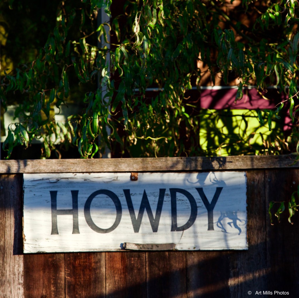 Out front of a Tiny House, below the Railroad District, we receive this Western greeting. Two guys, working in the garage of the main house, confirm its authenticity.