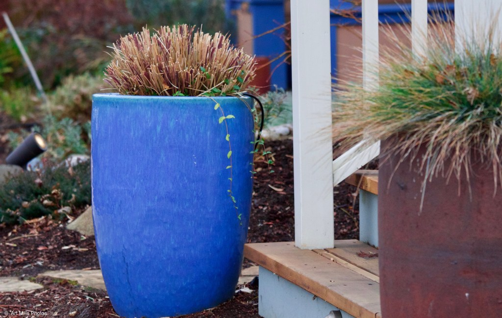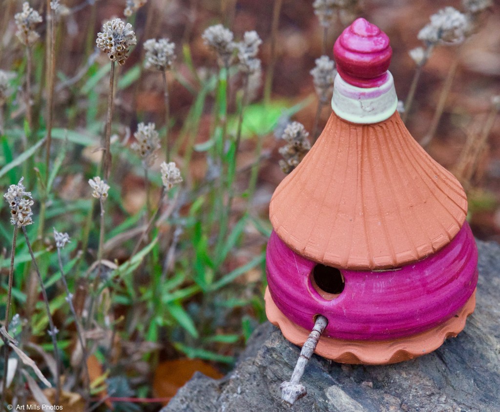 Not exactly the right placement for a working bird house, but it is playful!